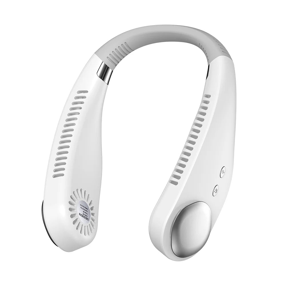 Q67 Portable Summer Air Cooling Neck Fan USB Rechargeable Bladeless Mute Sports Neckband Fans for Outdoor Feature: Hang it on your neck to free your hands; colorful breathing lights on both sides add beauty. The built-in fan blades are not exposed, so you can use it with confidence. The air outlet from the side of the neck is adopted, and the air outlet area is larger, which makes people feel comfortable and refreshing.